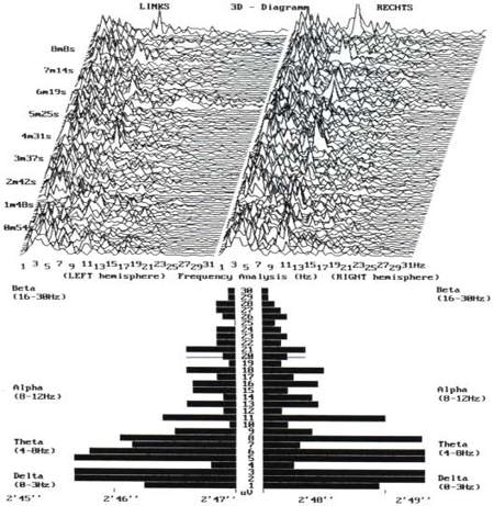 Haffelder was erg onder de indruk van deze resultaten omdat de EEG’s van mensen die aan een dergelijke stress worden onderworpen veel meer bèta-uitslagen zouden moeten geven. Zwaar mentaal denkwerk laat de hersenen werken in de bèta-stand; de thèta-stand die ook tijdens het beantwoorden van de vragen werd genoteerd, is de stand van volmaakte rust! Hoe zwaar de vragen ook werden, de hersenen van de proefpersoon raakten niet één keer uit balans. In 20 jaar hersenonderzoek had de verraste onderzoeker dit nog niet eerder meegemaakt.