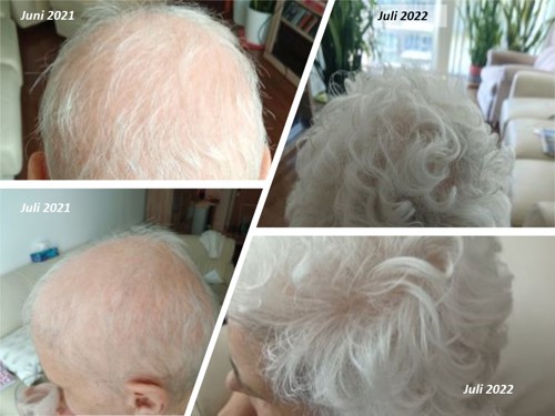 Een goede vriendin en tachyon therapeut van Wagner met een kalende hoofdkruin, gebruikte de getachyoniseerde™ haar tonic enkele maanden met enige regelmaat op de kruin van haar hoofd. In slechts een paar maanden tijd begon op de kalende plek een dikke laag donshaar te groeien!